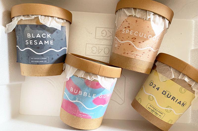 There were so many interesting flavours to choose from on their website, but I eventually decided on these 4 flavours: Black Sesame, Bubble Gum, Speculoos and D24 Durian!